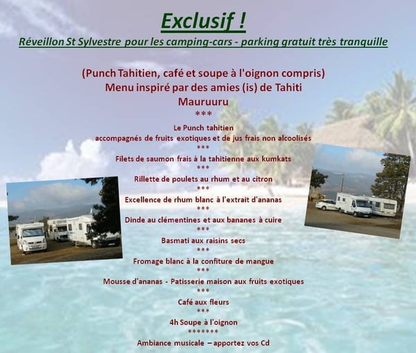 Evidemment il ne s’agissait pas d’un réveillon « smocking et robe longue » mais beaucoup spontané et nature avec paréo, pagne et collier tahitien, c’était le thème de la soirée.